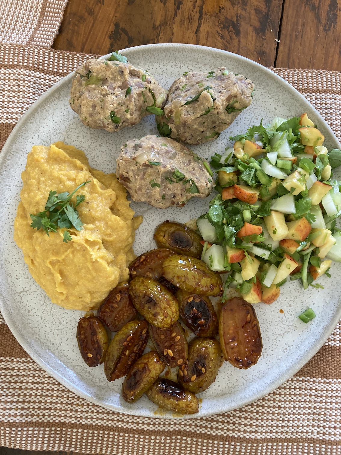 Jerimum com grão de bico e molho cremoso de amendoim